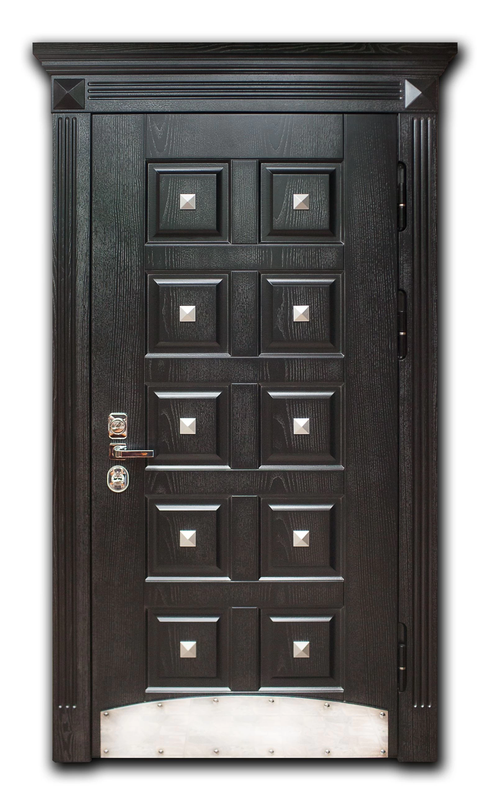 В основе конструкции элитных дверей в Мурманске - стальной лист толщиной не менее 2.0 мм, дверное полотно укреплено ребрами жёсткости (могут быть горизонтальными, вертикальными, комбинированными). При желании можно сделать дверь из стали 3.0 и даже 4.0 мм. Но тут есть ряд особенностей. Полотно и каркас такой двери невозможно сделать из гнутого профиля, конструкция только сварная. Ну и надо помнить, что двери из толстого металла очень тяжёлые, а следовательно, травмоопасные.