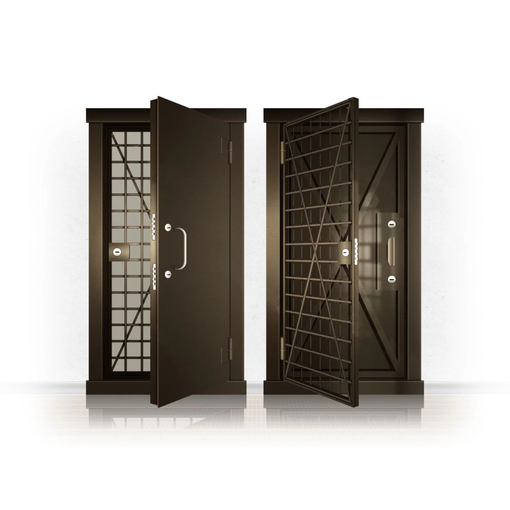 Металлические двери КХО и КХН представляют собой входные блоки, обладающие высоким уровнем взломостойкости и состоят из трех основных элементов: усиленного каркаса, сплошного металлического полотна и решетчатой двери. Дверной блок изготавливается из стального уголка 100*100 мм. Места крепления блока к стене цементируются и закрываются стальными наличниками шириной 40 мм. Крепеж заходит вглубь стены на 80 мм. В конструкции внешней створки монтируются ребра жесткости, для обшивки используется сталь толщиной не менее 3 мм. Внутренняя решетка изготавливается из прутка диаметром 16 мм. Размер ячеек решетки должен составлять не более 15 на 15 см. В точках пересечения прутья надежно приваривают друг к другу. В КХО и КХН необходимо поддерживать определенную температуру и влажность. Для этого внутреннее пространство глухой двери заполняется теплоизоляционным материалом, а по периметру двери приклеивается уплотнитель. Такие двери оборудуются замками с повышенным уровнем взломостойкости. Специализированные двери КХО и КХН в Мурманске могут быть оснащены сигнализацией, в конструкции могут быть проушины для навесного замка и элементами для опечатывания. Если идет речь о двери в комнату хранения оружия, в створке оборудуется окно для выдачи оружия и спец. средств, которое накрывается стальной дверцей.